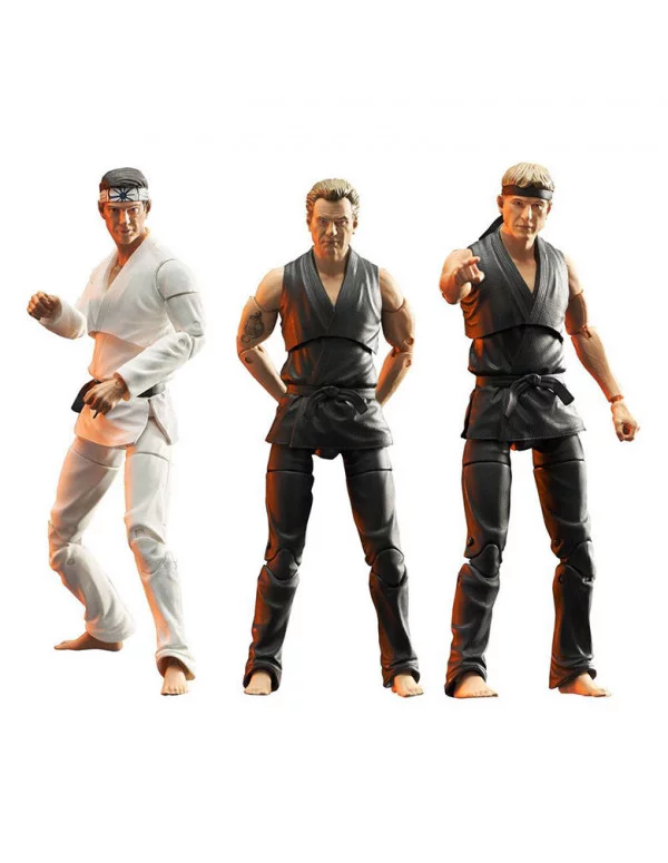 Pack de 3 figuras articuladas de la serie de televisión "Cobra Kai", tamaño aprox. 18 cm. 1x Daniel LaRusso 1x Johnny Lawrence 1x John Kreese