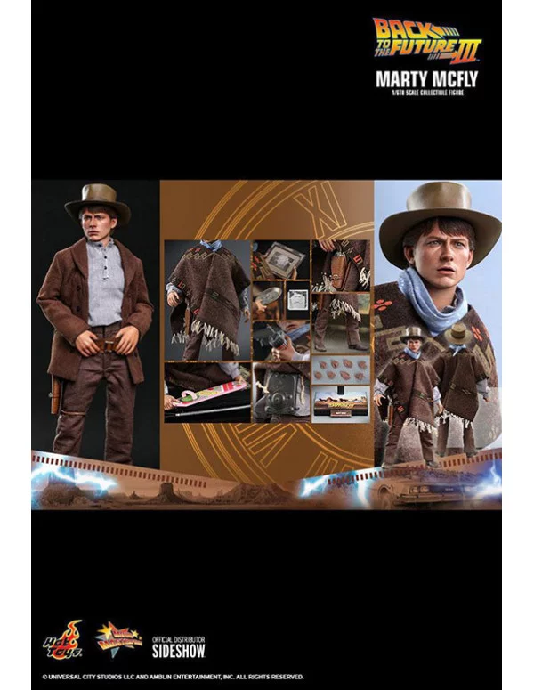 La figura coleccionable asombrosamente detallada está especialmente diseñada en base a la aparición de Michael J. Fox como Marty McFly en Back to the Future III, con una cabeza esculpida recientemente desarrollada y un sombrero de vaquero con una semejanza asombrosa, un traje preciso en la pantalla, un poncho estampado marrón, bufanda de vaquero, una variedad de armas y accesorios que incluyen una pistola, una placa de cocina a prueba de balas, un plato para tartas, una foto enmarcada de Doc Brown, una foto de la tumba de Doc, un comunicador con batería, una patineta flotante y un soporte para figuras.