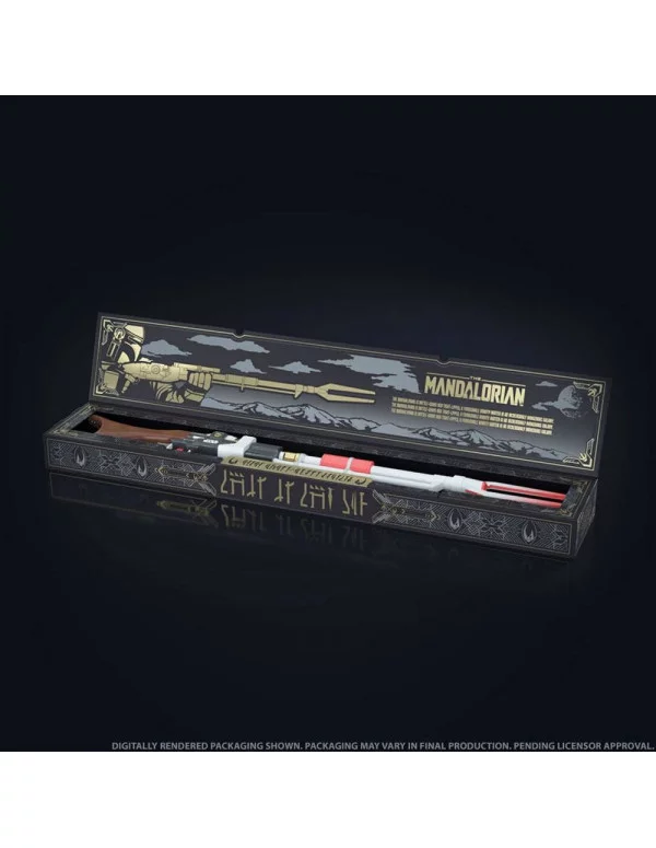 Rifle láser de la serie de televisión´Star Wars: Tha Mandalorian´. Incluye 10 dardos. Longitud: 127 cm. Pilas necesarias (2x AAA, no incluidas).