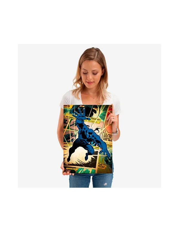 Póster talla M - Black Panther con fondo e iconografía comiquera de la edad de plata de los cómics Marvel.