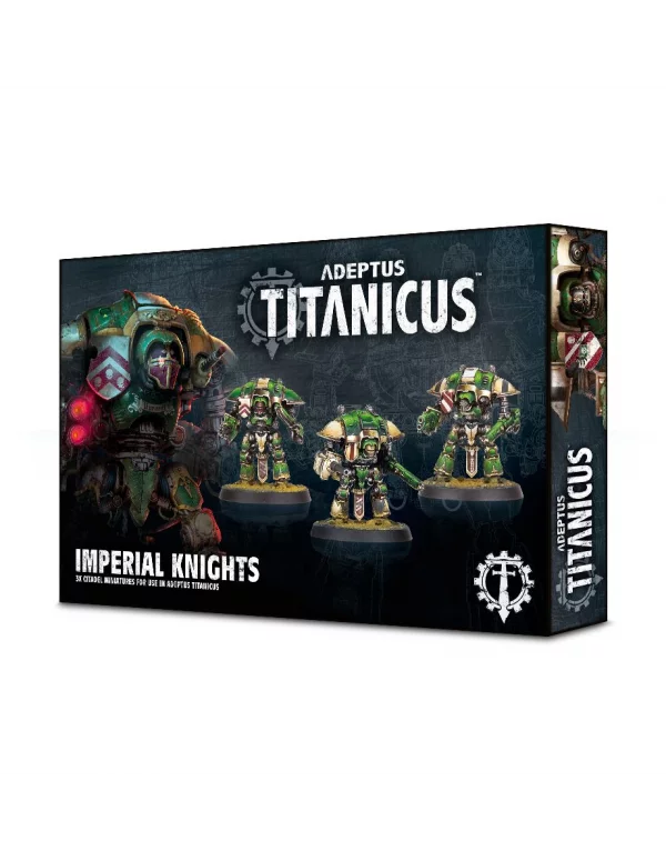 Esta caja contiene las piezas necesarias para montar 3 Imperial Knights para usar en partidas de Adeptus Titanicus. Cada una de estas máquinas está armada con una reaper chainsword, y tiene disponibles un thermal cannon, rapid fire battlecannon, avenger gatling cannon y 3 heavy stubbers (1 de las cuales puede sustituirse opcionalmente por un meltagun). Se trata de miniaturas muy detalladas que, aunque tienen la escala correspondiente a Adeptus Titanicus, son tan impresionantes como sus camaradas de mayor tamaño: gruesas placas de armadura, una carcasa curva, mecanismos hidráulicos expuestos y motores visibles son las señas identitárias de este kit, y cada uno lleva también su propio escudo de justa.