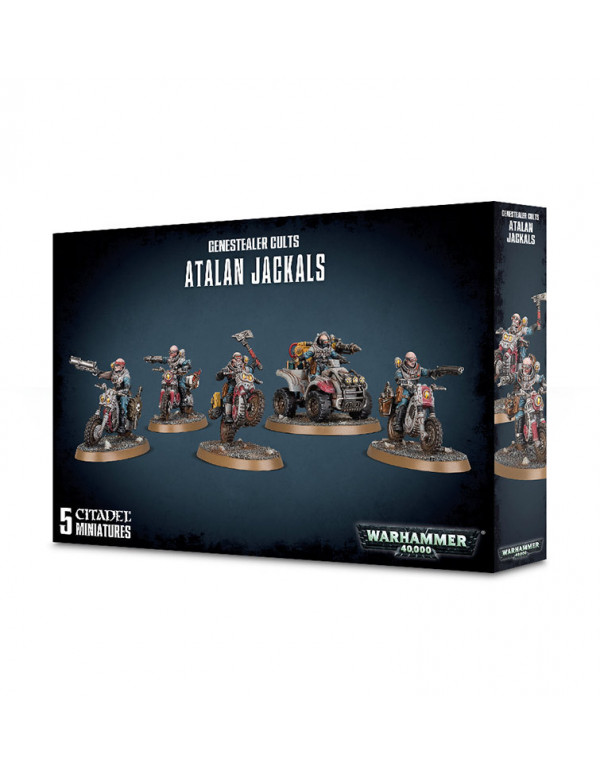 Los Atalan Jackals aportan potencia de fuego móvil y apoyo de asalto veloz a tu ejército de Genestealer Cults. Son capaces de recorrer el campo de batalla a una velocidad asombrosa, y son ideales para explotar puntos débiles en la línea enemiga o apoderarse de objetivos vitales.
