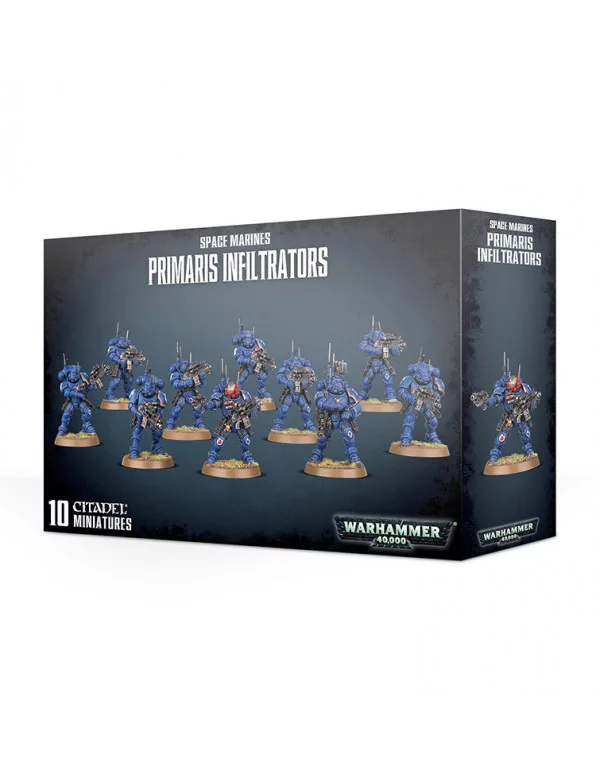 Con una armadura modelo Mk X Phobos, los ligeros y veloces Infiltrators Primaris son responsables de desbaratar las comunicaciones enemigas y sabotear los blancos de oportunidad. Lo primero que ve el enemigo es una cascada de humo asfixiante mientras los Infiltrators arrojan una barrera de granadas de humo, ocultando su avance. Mientras el enemigo se asoma a la nube que se arremolina, los Space Marines derriban a sus blancos con disciplinadas andanadas de fuego, los disparos de sus carabinas bólter de tirador iluminan a cada víctima antes de aniquilarla.